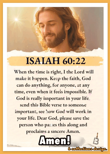 isaiah 60:22 when the time is right i the lord will make it happen keep the faith god can do anything