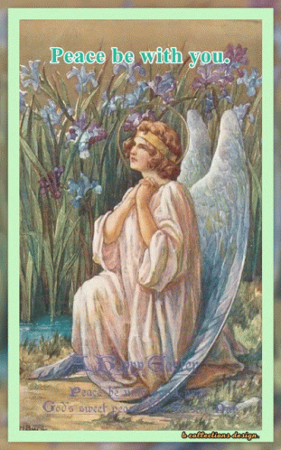 a painting of an angel with the words peace be with you on the bottom