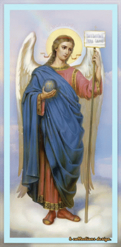 a painting of a man with wings holding a sign that says ' a collection of design '