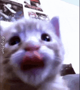 a close up of a cat 's face with its mouth wide open .