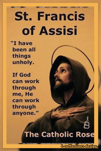 a poster of st. francis of assisi with a quote from him