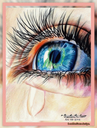 a drawing of a woman 's eye with a tear coming out of it and the date 24.03.2014