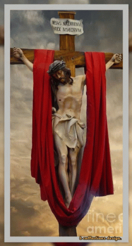 a statue of jesus hanging on a cross with a sign that says ' jesus neitaenvm ' on it