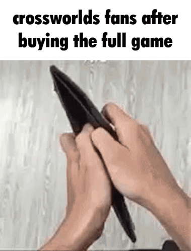 a person is holding an empty wallet in their hands in a meme about crosswords fans after buying the full game .