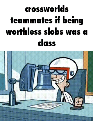 crossworlds teammates if being worthless slobs was a class is a cartoon character sitting at a desk .