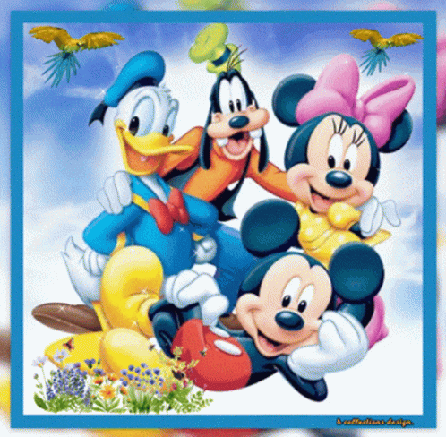 a picture of mickey mouse donald duck goofy minnie mouse and daisy duck on a blue background