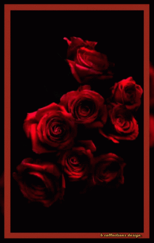 a bunch of red roses on a black background with a red frame