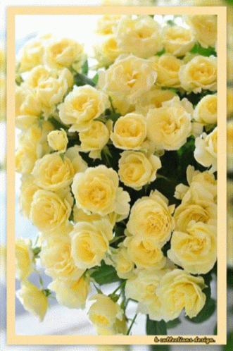 a bunch of yellow roses are displayed in a photo