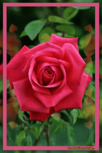 a close up of a red rose with a pink border and the words breffellano design on the bottom