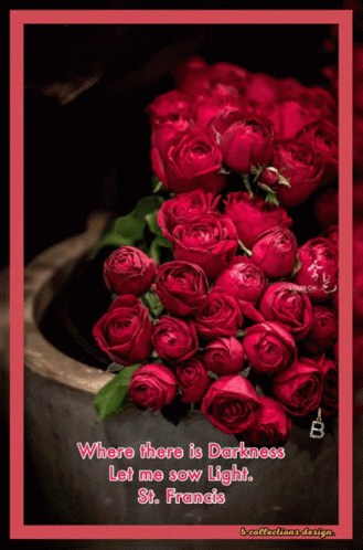 a picture of red roses with a quote by st. francis