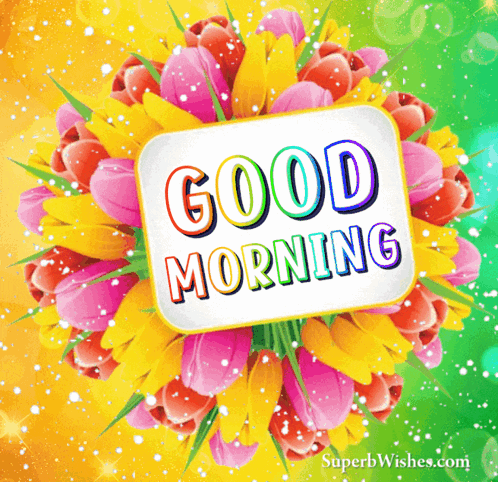 a colorful bouquet of flowers with a good morning message
