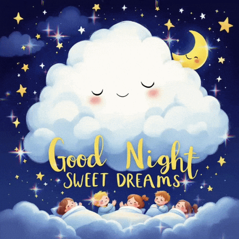 a good night sweet dreams card with a cloud with a face on it