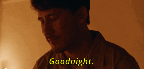 a man says goodnight in yellow letters