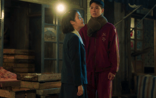 a man wearing a scarf and a red shirt with white stripes