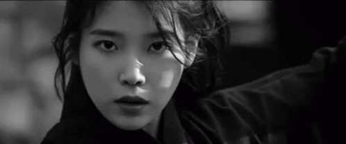 a black and white photo of a woman 's face looking at the camera .