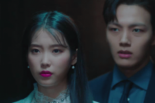 a man and a woman are standing next to each other and the woman is wearing pink lipstick