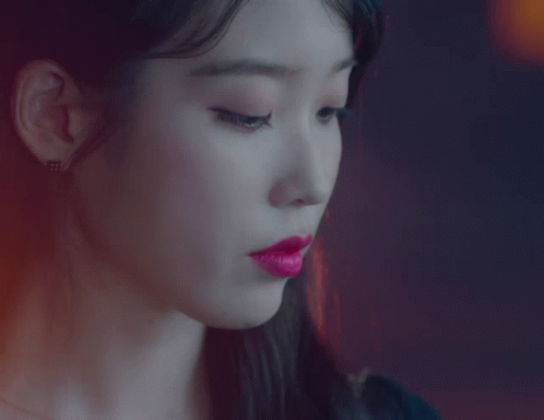a close up of a woman 's face with red lipstick on