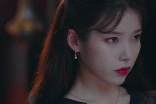 a close up of a woman 's face with earrings and red lipstick