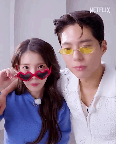 a man and a woman wearing heart shaped sunglasses with netflix written on the bottom