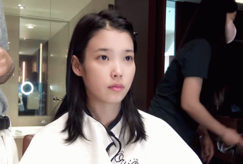 a woman getting her hair cut with a cape that says " you "
