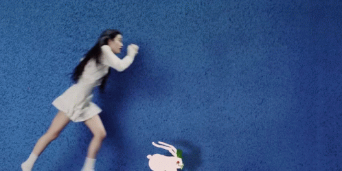 a woman in a white dress is running from a door
