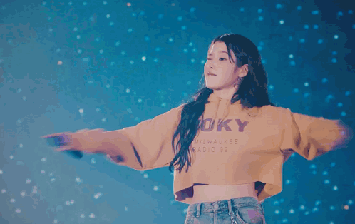 a woman wearing a yellow crop top that says oky on it