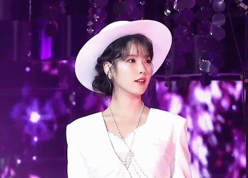 a woman wearing a white hat and pearls looks at the camera