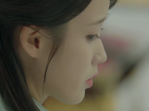 a close up of a woman 's face with a ponytail on