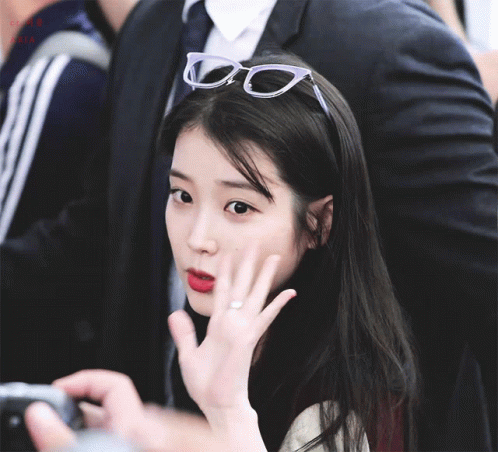 a woman wearing sunglasses and a ring on her finger is being photographed by aria