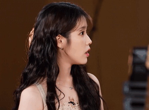 a woman with a surprised look on her face and a foreign language behind her