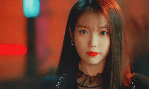 a close up of a woman 's face with long hair and red lipstick