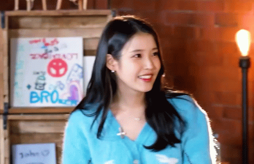 a woman wearing a blue sweater stands in front of a sign that says bro