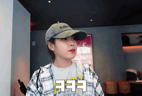 a woman wearing a hat that says black