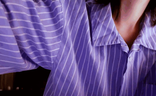 a woman wearing a purple and white striped shirt