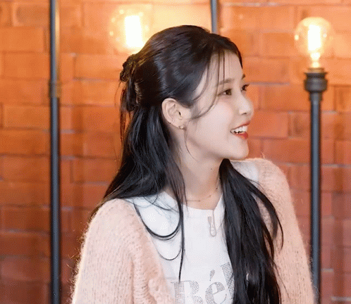 a woman wearing a pink cardigan and a white shirt that says re