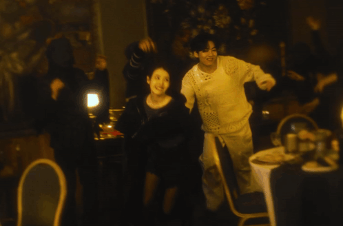 a blurry photo of a man and a woman dancing in a dark room