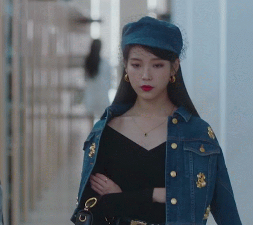 a woman wearing a black top and a denim jacket
