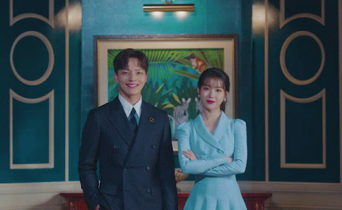 a man and a woman are looking at each other in front of a picture of a zebra