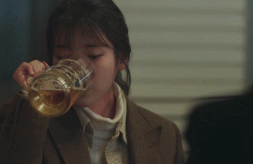 a man in a suit drinking a glass of beer