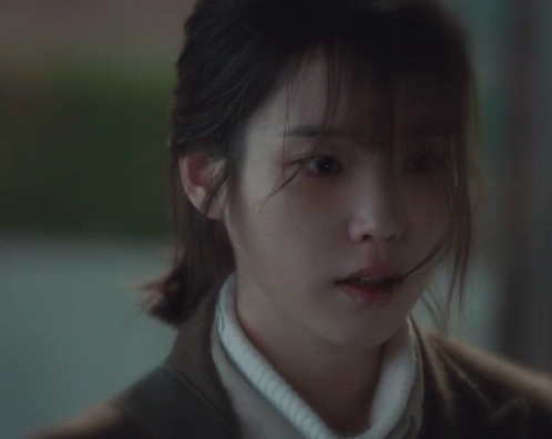 a close up of a woman 's face with a sweater and jacket on