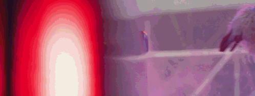 a red light is shining on a purple wall .