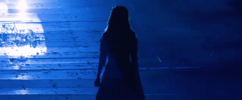 a silhouette of a woman with a crown on her head standing on a set of stairs