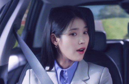 a woman sitting in a car with her mouth open