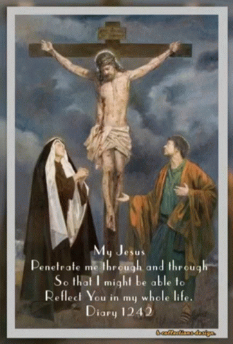 a painting of jesus on the cross with a quote from the diary 1242