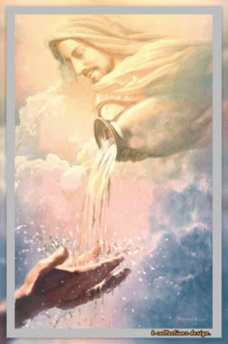 a painting of jesus pouring water into someone 's hands