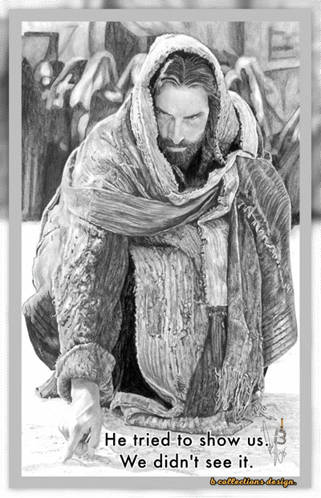 a black and white drawing of jesus with the words he tried to show us we didn 't see it