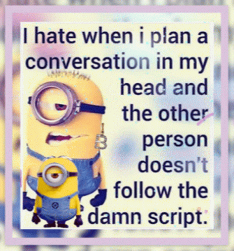 two minions are standing next to each other with a quote that says i hate when i plan a conversation in my head