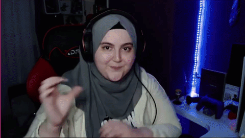 a woman wearing a hijab and headphones is sitting in a chair