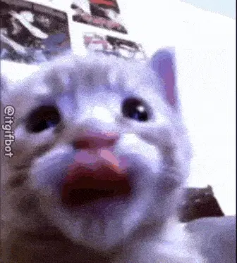 a white cat is peeking out from behind a couch and asking how are you .