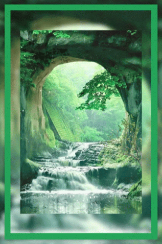 a picture of a waterfall with a green frame surrounding it